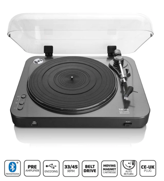 The Lenco LBT-120BK record player is a semi-automatic record player with Bluetooth® functionality. You can connect the record player to your Bluetooth® speaker in seconds and enjoy a full and warm sound from the comfort of your couch.